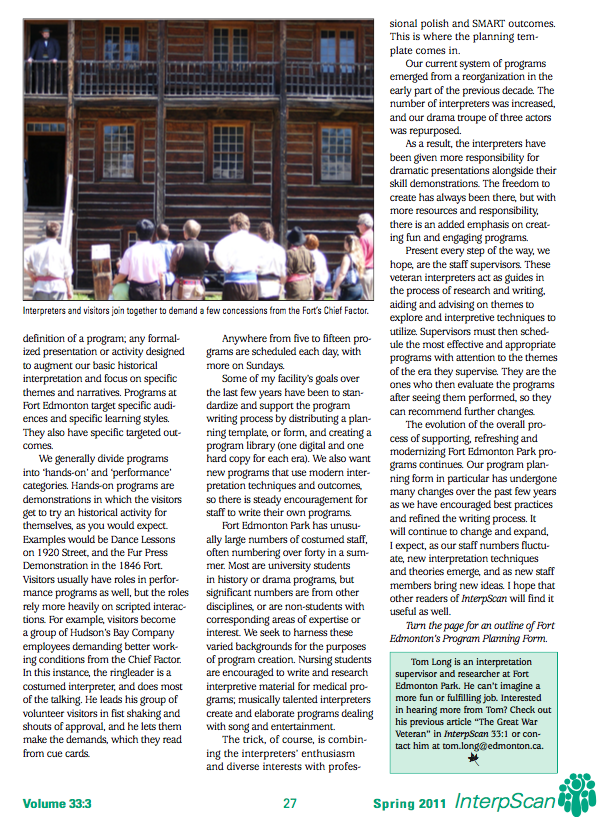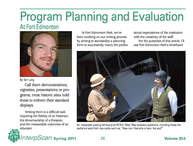 Interpretation Canada Article: Program Creation Posted byhyperboreantomJune 15, 2020July 8, 2020Posted inUncategorizedTags:Heritage, Interpretation, Interpretation Canada, Interpscan, Living History This article was originally published in InterpScan, the Interpretation Canada magazine in Spring 2011. Why do this? Like Loading... Related