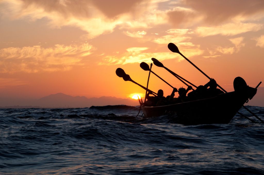 Moomat Ahiko is heavy, but light enough that a dozen rowers can lift and move her.