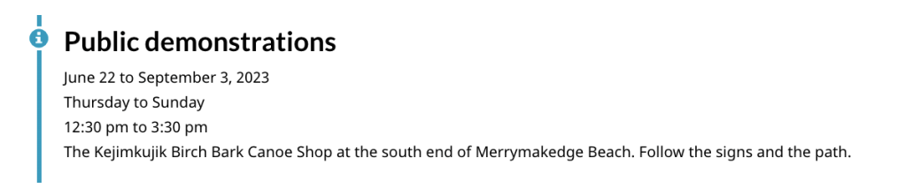 “Traditional Mi’kmaq birch bark canoe building with Todd Labrador” Parks Canada Website, retrieved 20-12-2023. https://parks.canada.ca/pn-np/ns/kejimkujik/culture/autochtone-indigenous/canot-canoe