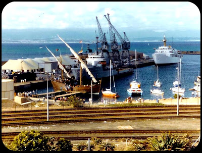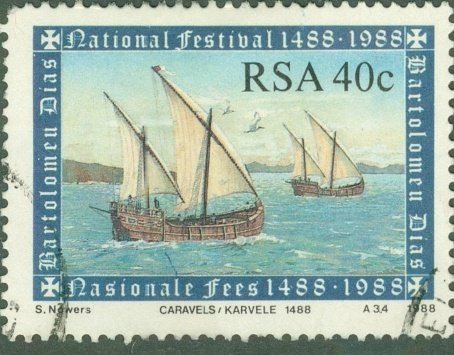 Upon the caravel’s arrival (on time) at Dias ’88, “[South African president] PW Botha went aboard the SAS Protea of the South African Navy and welcomed the vessel while it was still at sea. Surrounded by a navy flotilla, the caravel then made its way into Munro Bay in a scene that South African Panorama, an official publication of the National Party’s Bureau for Information, described as ‘moving and unforgettable’,” (Witz, 2006)