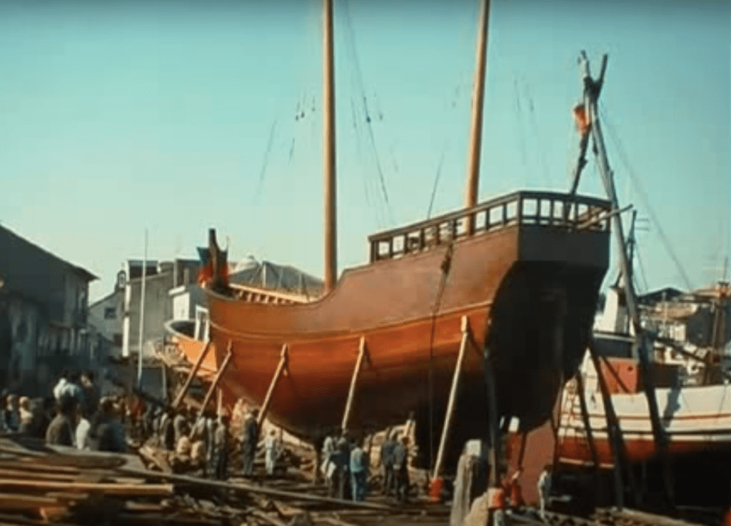 The shipyard of Samuel & Filho’s in Vila do Condo, near Oporto in Portugal was the site of the build. “The hull was made of pine and oak and equals the width of a modern tug. It had a displacement of about 130 tons, which included 37 tons of ballast, made of concrete and granite blocks from Lisbon. The ship has two masts and two lateen sails.” (Dias Museum Website)