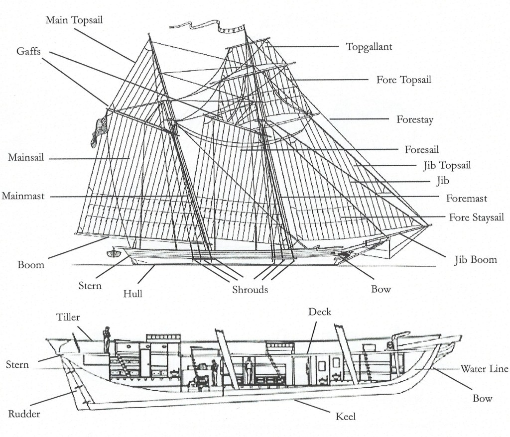 “The modern Amistad is not an exact replica of the original La Amistad. The designers of Freedom Schooner Amistad, Tri-Coastal Marine, of Richmond California, used modern computer technology to recreate a new vessel, following the general plan of “Baltimore Clippers”, ships unique for the period both in design and proportion. The new Amistad is slightly larger than the original La Amistad of 1839. The extra 10 feet of length was built into the ship to accommodate an engine room. The recreated schooner conforms to late 20th century specifications and U.S. Coast Guard safety requirements for passenger-carrying vessels.” (Amistadcommittee.org)