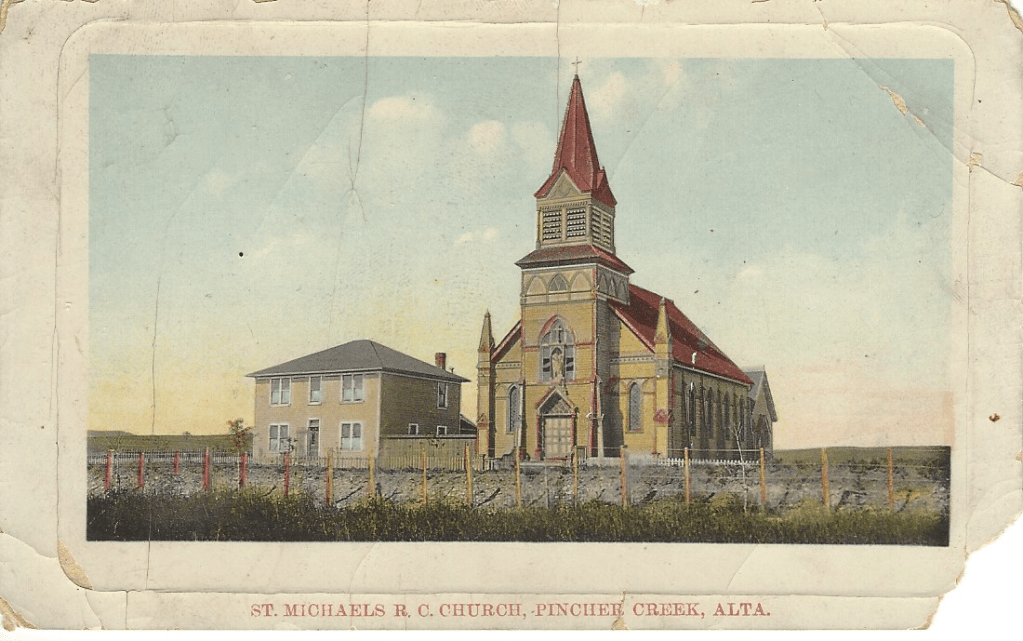 Elsewhere on this postcard, M. McDonald notes that she is staying at Lacombe House in Midnapore, Calgary. Father Albert Lacombe, the famous missionary, was a family friend who baptised several of Eliza’s children and worked closely with Métis and First Nations communities across the West. His last great project was the building of a charitable home in Calgary. Lacombe House was a “a substantial facility to accommodate orphans, the aged, and the poor.” Its tradition continues with the Father Lacombe Care Foundation.