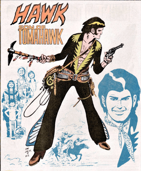 Hawk (Son of Tomahawk) was the star of spinoff stories in a comic that featured his dad, Tomahawk, fighting the a British during the American Revolution. Declining sales of Tomahawk led to a revamp that was set 40 years later and more purely a Western, made more interesting by the new hero’s mixed descent (don’t worry about time periods, they didn’t).