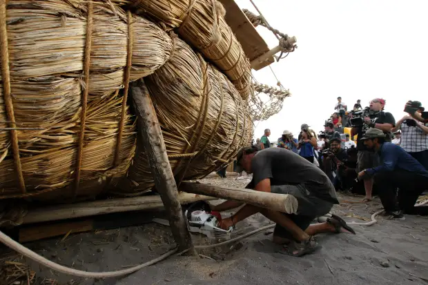Phil Buck has led the building of three different iterations of a reed-based raft for pacific voyaging, inspired (as many are) by Thor Heyerdahl and the Kon-Tiki expedition. This is a fascinating example of a build and a voyage that are inspired by history, but more interested in adventure than in recreating any specific craft.