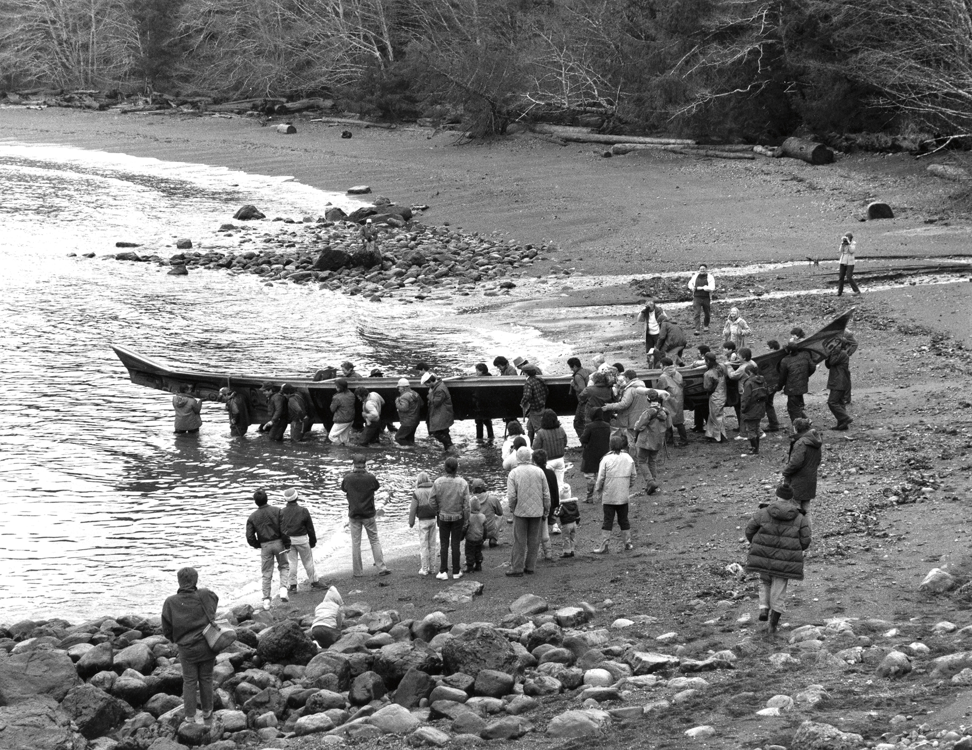 Famous Haida artist Bill Reid considered the building of ocean-going canoe Loo Taas as the most satisfying thing he had ever done. The canoe was featured at Expo ’86 in Vancouver before being paddled back to Haida Gwaii and helping to spark a revival of building and voyaging in traditional canoes on the West Coast.
