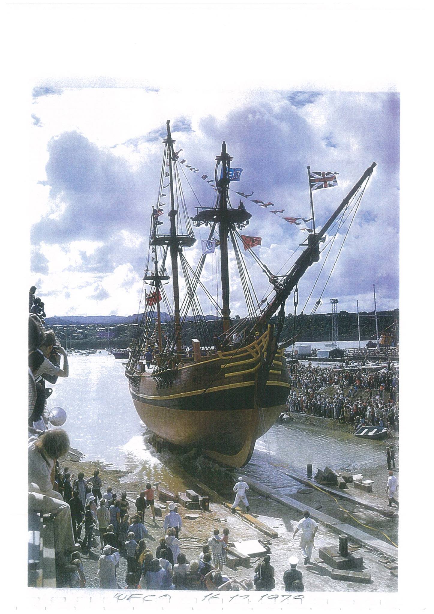 Commemorative builds of colonial ships do not end, even if I do believe they become more rare. One of the last of the big projects I’ve looked at, the replica of Captain Cook’s HMB Endeavour overcame many roadblocks to launch in Australia in 1993. But its participation in re-enacted voyages was not uncontested.