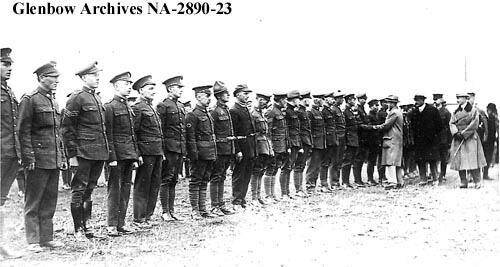 Eliza’s son George Scheer was born in 1885, the year of the North-West Resistance. He attended schooling in Macleod and entered the printing business, working for a time for the Macleod Gazette. He served a short time with a militia unit. In 1914 “with his buddies” he enlisted in the First World War, joining Lord Strathcona’s Horse (Royal Canadians).